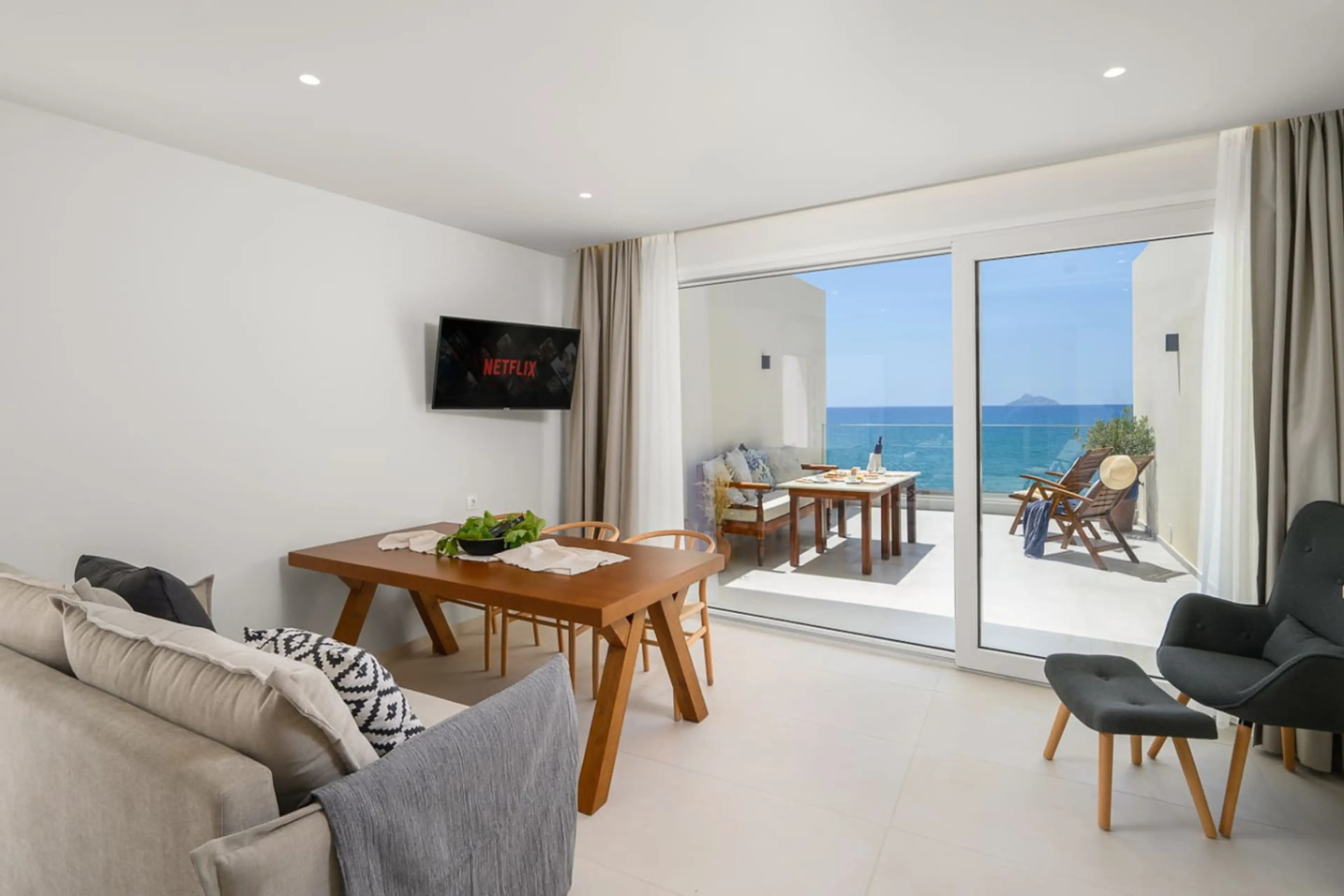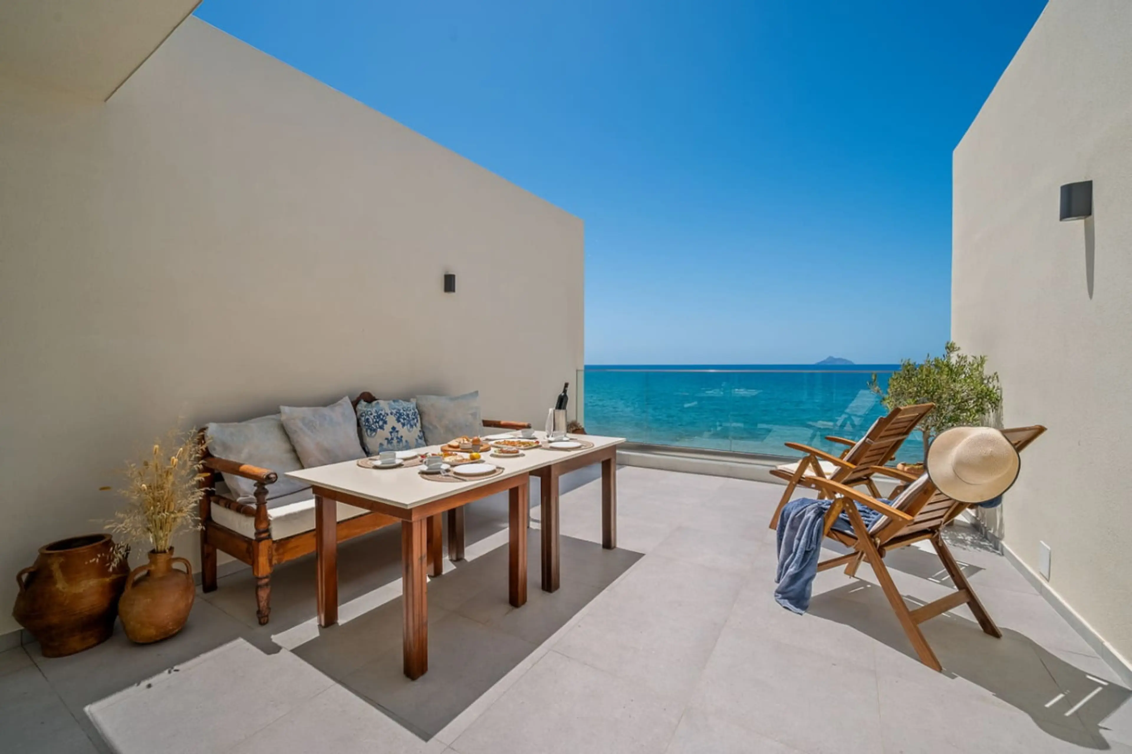 Named after Stafilos, the son of Dionysus and Ariadne. As our superior suite, it features two beautifully designed bedrooms and can comfortably host up to 5 guests. Each room is air-conditioned and fitted with high-quality mattresses. The kitchen is fully equipped, and you'll find both indoor and ou...